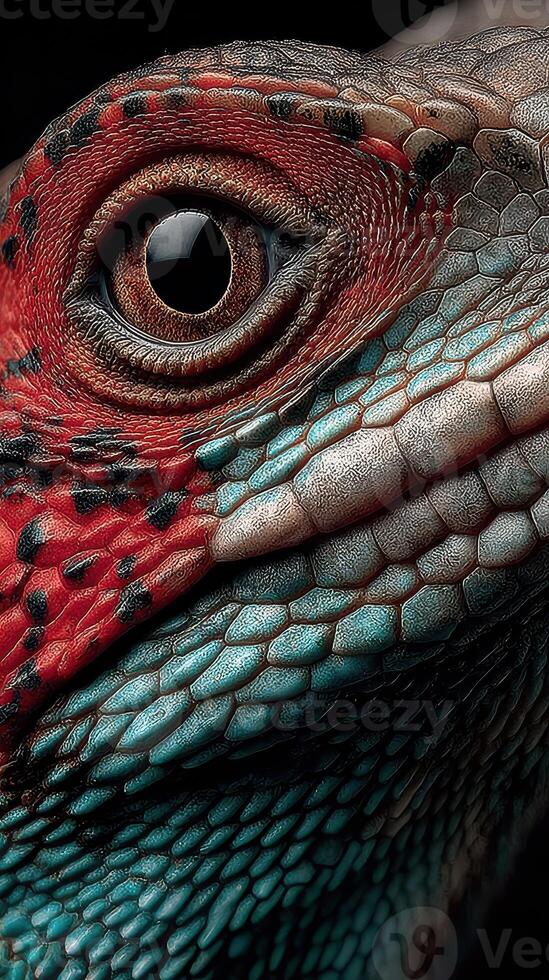 Close-up of a colorful lizard showcasing intricate scales and vibrant patterns in a natural habitat Pro Photo