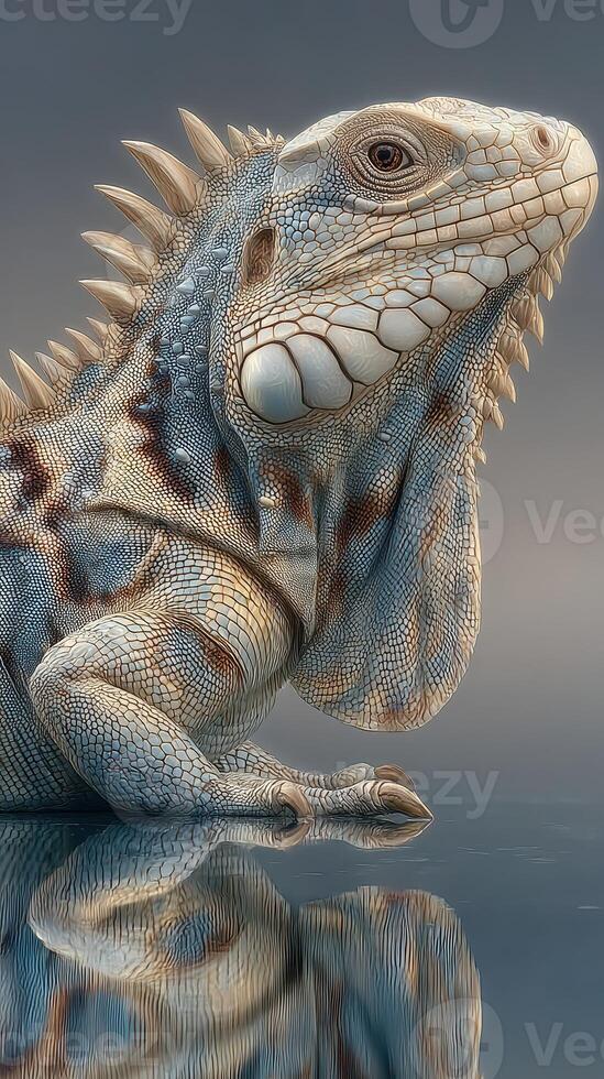 Lizard resting on smooth surface with a reflective sheen in dim light conditions Pro Photo