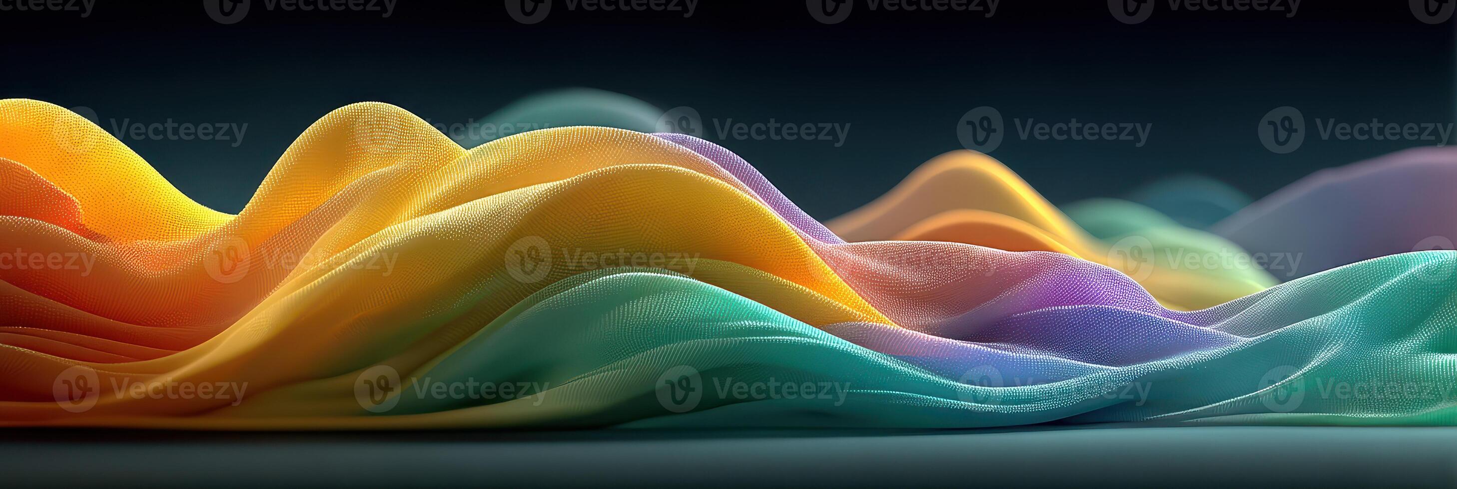 Colorful waves of fabric create a vibrant display of flowing textures in a dark setting Pro Photo