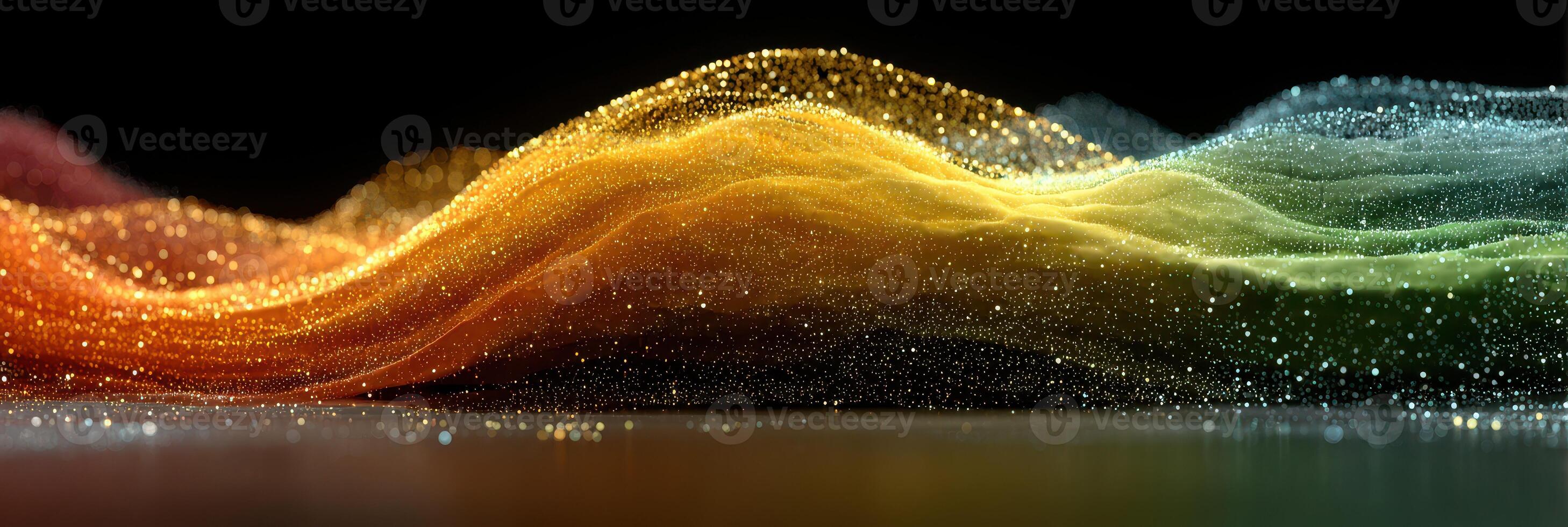 Colorful abstract digital wave representation with light particles flowing gently across a dark background Pro Photo