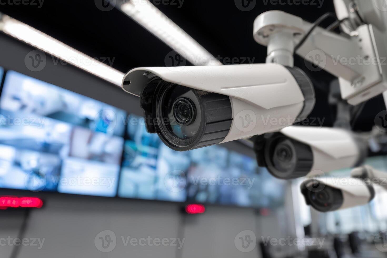 Multiple surveillance cameras viewing monitoring station with displayed security feeds Pro Photo