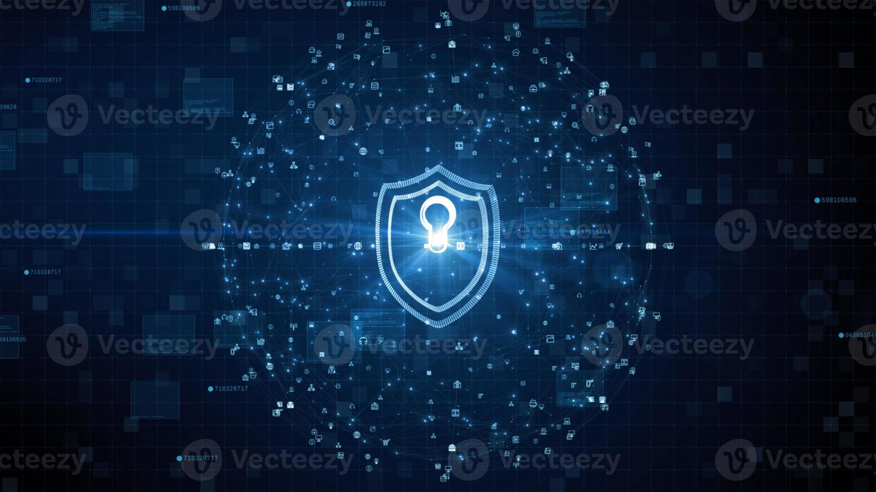 Shield Icon of Cyber Security. Digital Data Network Protection. High speed connection data analysis. Technology data binary code network conveying. Future technology digital background Pro Photo