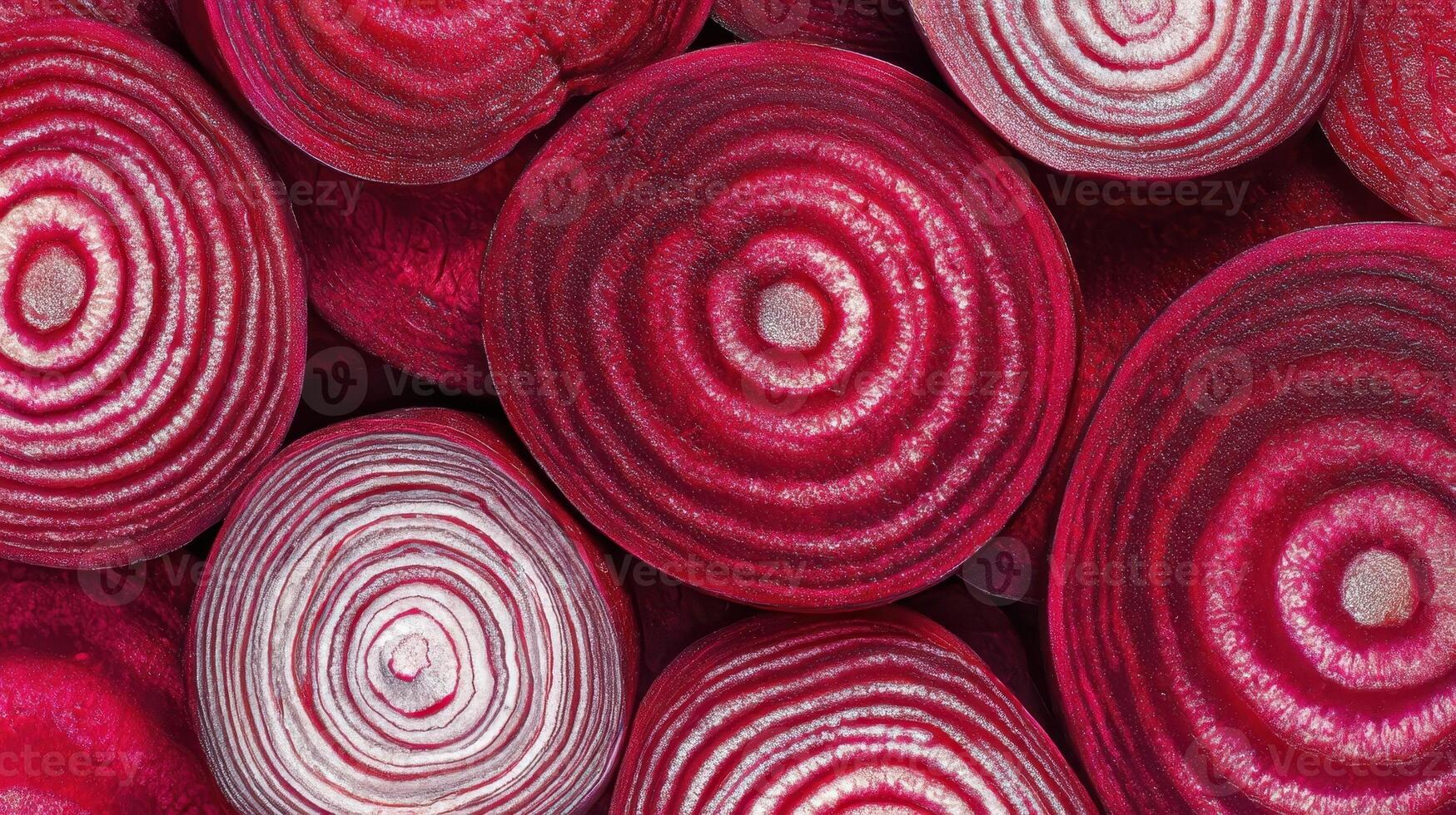 Deep red beet slices display intricate patterns and textures in a close up view Pro Photo