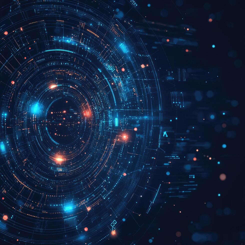 Futuristic Technology Circuit Board Background with Glowing Lights and Data Streams for Science and Engineering. photo