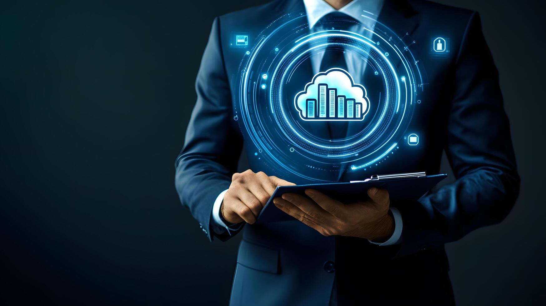 Cloud Data Analytics Management with Businessman Secure Data Storage, Processing, and Insights in the Digital Age. photo