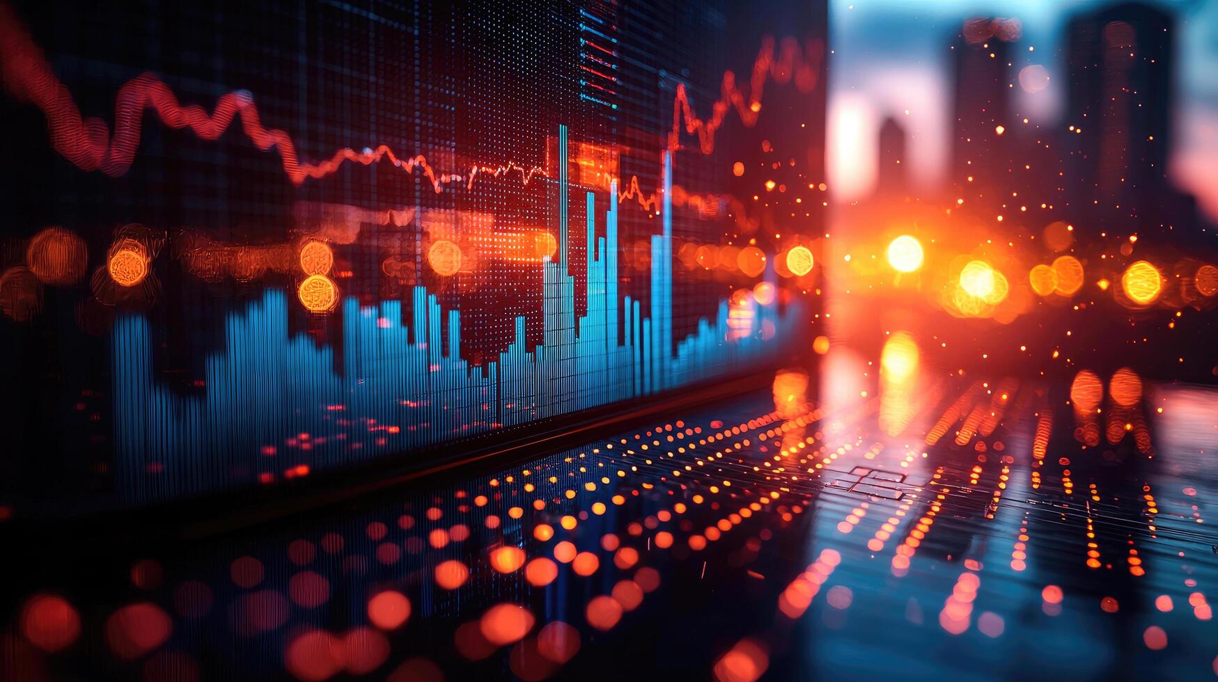 Dynamic Financial Data Visualization with Glowing Chart and Bokeh Lights for Stock Market Analysis. Free Photo