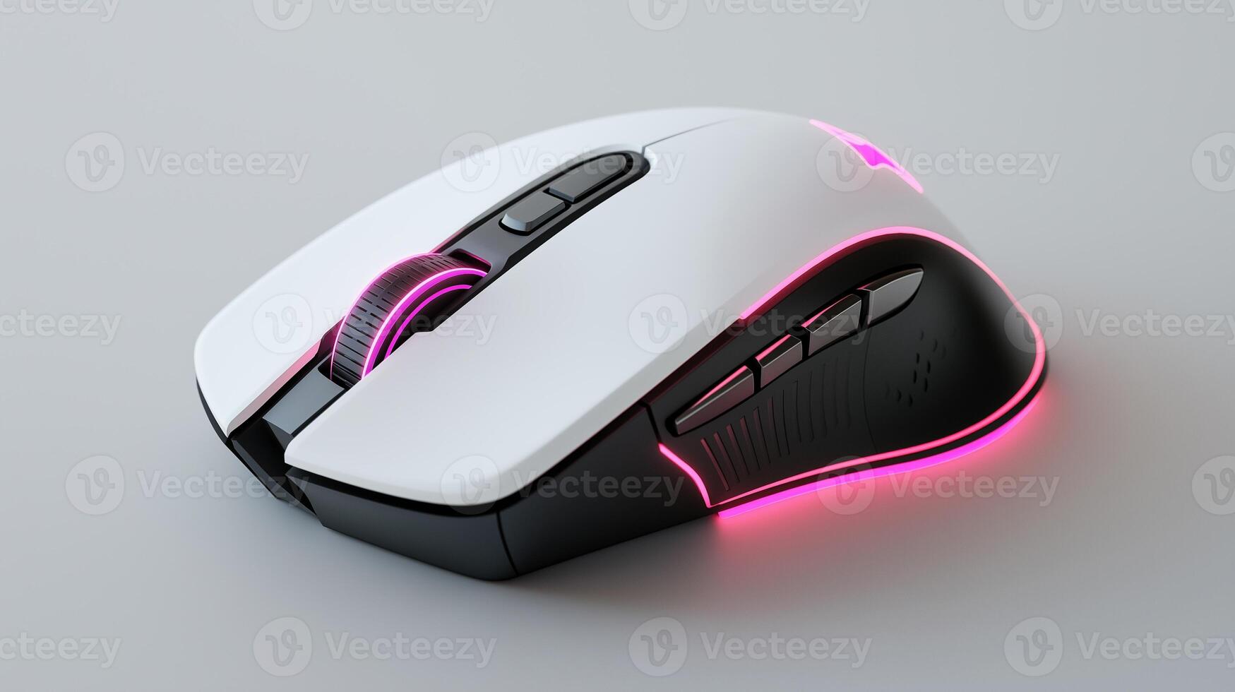 Wireless computer mouse with led light image closeup. Powerful gaming device for personal computer close-up photography. Modern hardware presentation concept photo realistic Pro Photo