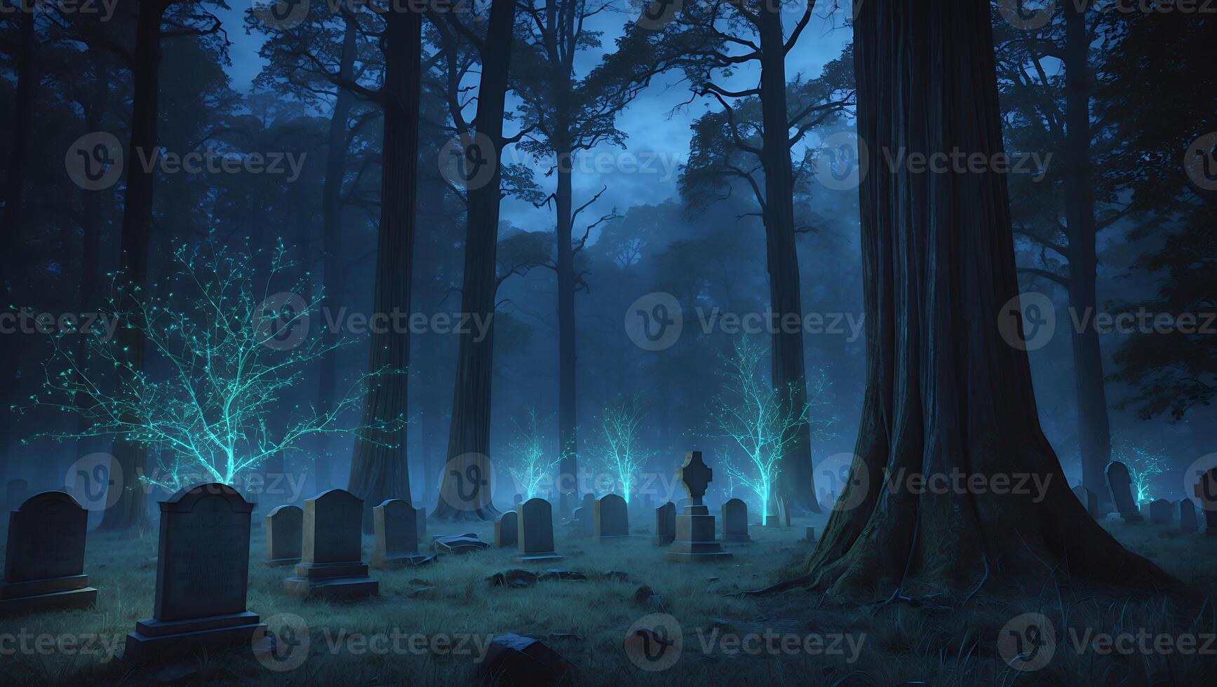 Exploring a Mystical Graveyard at Night with Glowing Trees Pro Photo