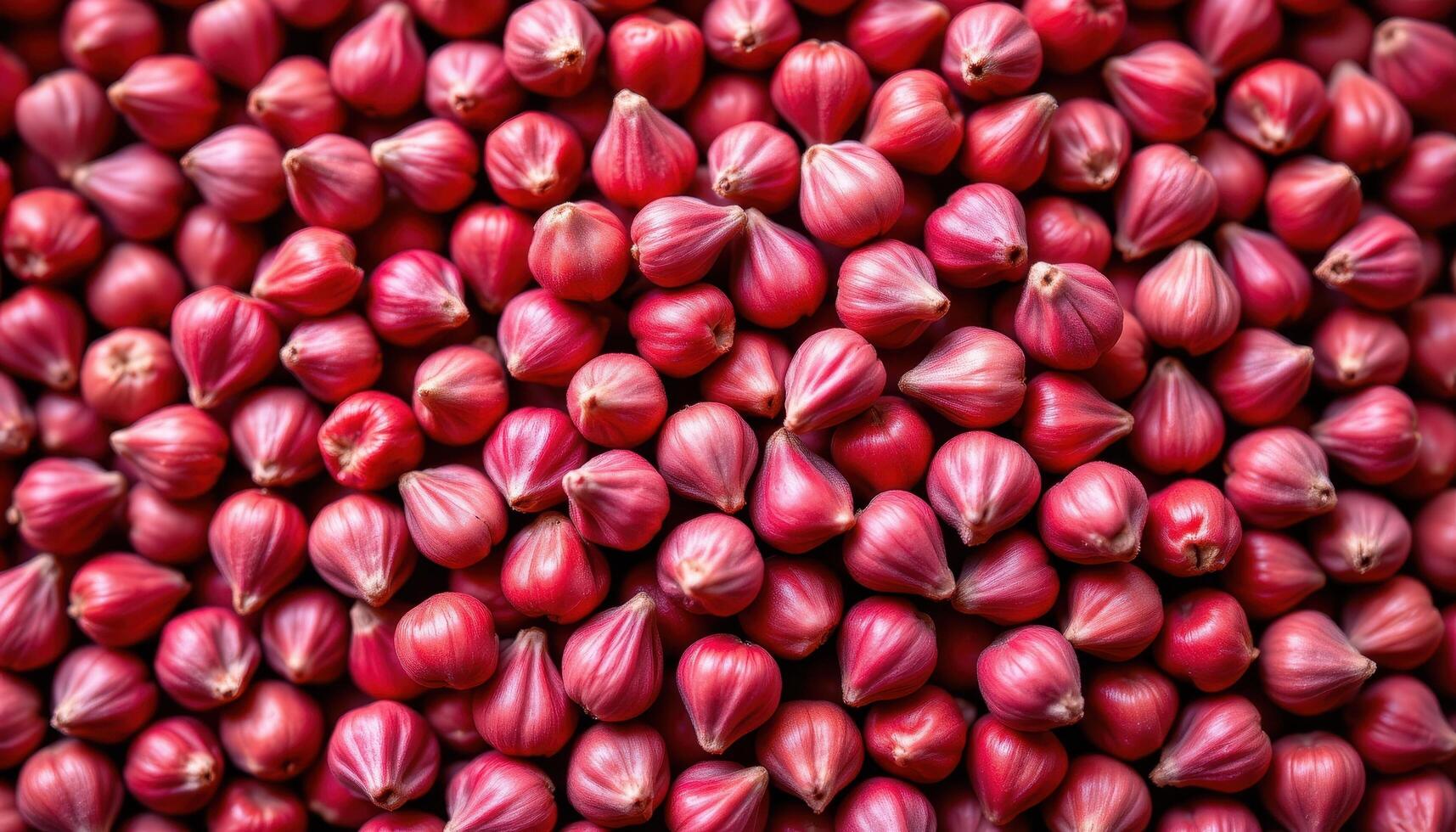 close up view of red amaranth seeds grouped into a smooth symmetrical pile. photo