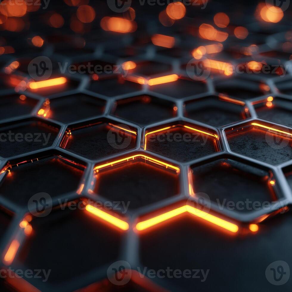 3d rendering of a hexagonal pattern of glowing orange lights Pro Photo
