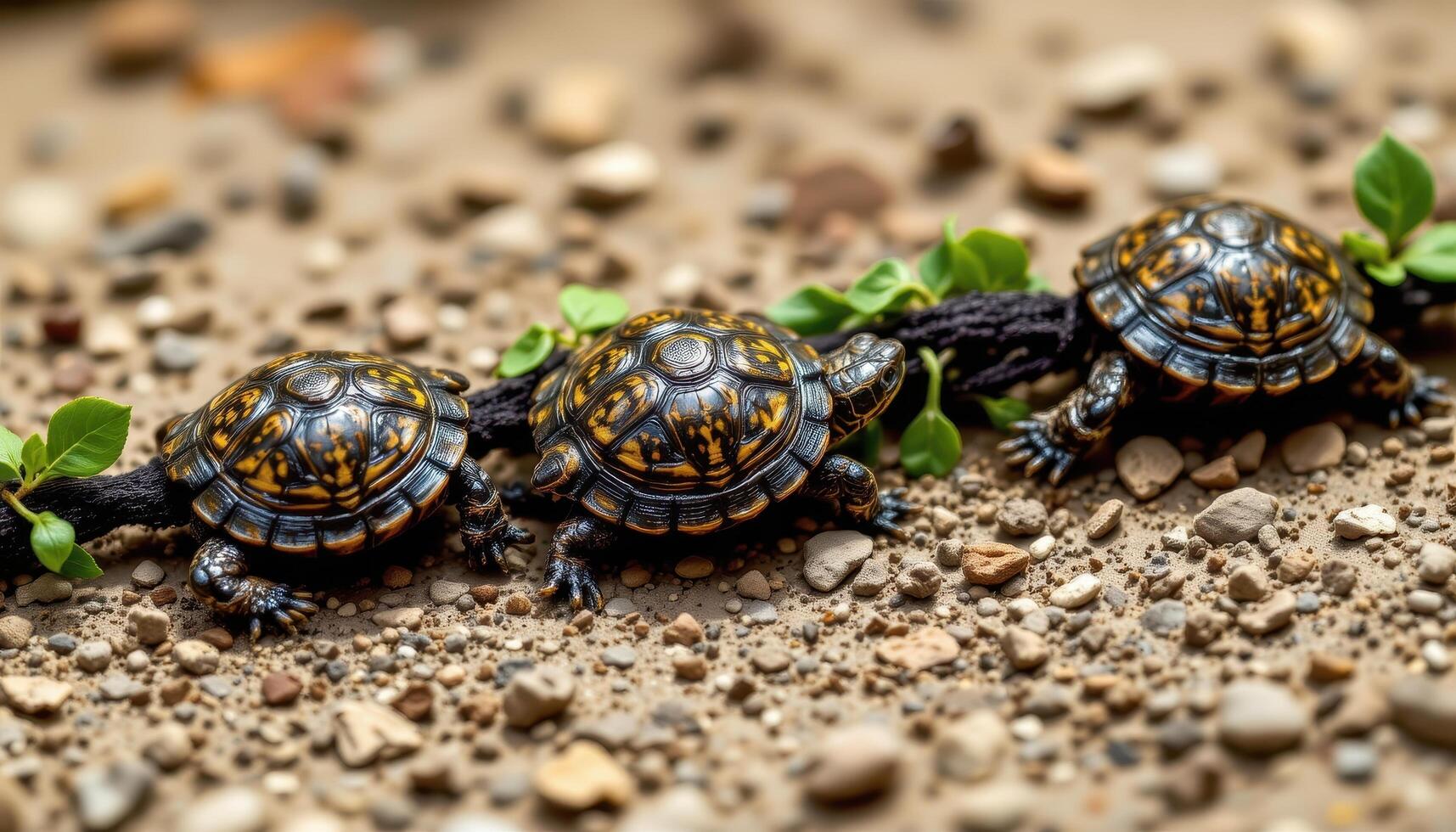 close up view of a string of turtles with miniature round patterned leaves forming a thick trailing chain Free Photo