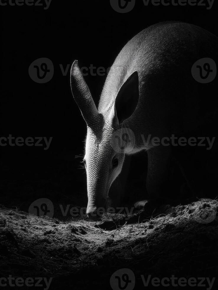 Aardvark Exploring the Ground at Night With Dramatic Shadows Creating an Intriguing Atmosphere in a Dark Environment Pro Photo