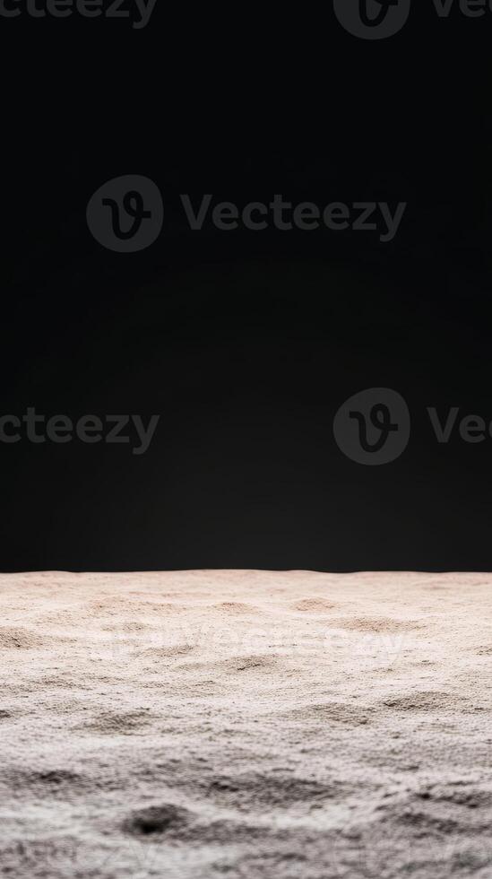 Subtle textured surface, evoking a lunar landscape or fine desert sand, rising from a deep, dramatic black void, creating a serene, abstract backdrop. Pro Photo