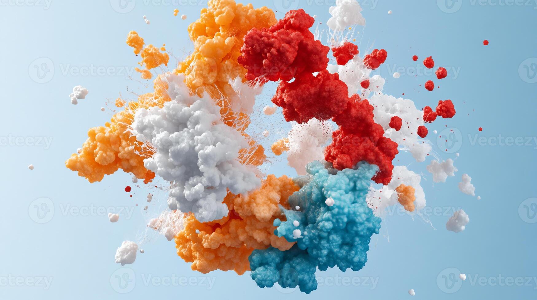 Abstract explosion of colorful smoke and dust particles creates a vibrant visual effect against a clear blue sky Pro Photo