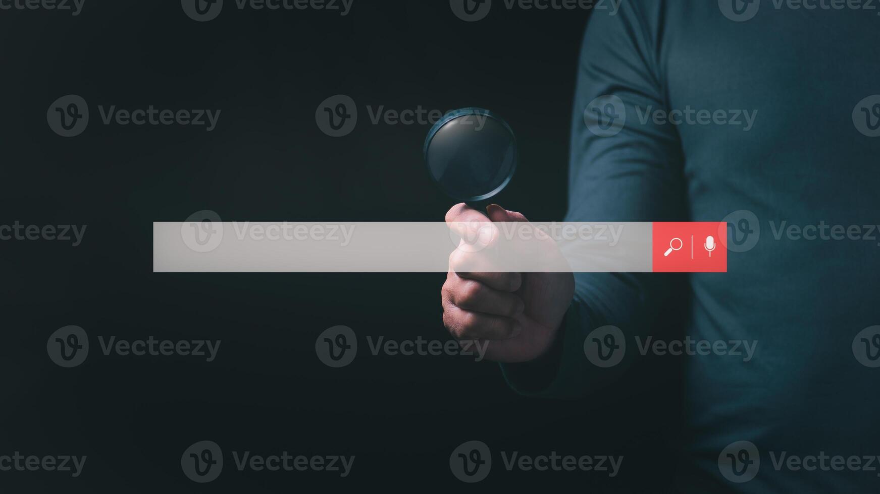 Big data internet network concept, man using magnifying glass to communicate searching for information on the internet, SEO search engine optimization, surfing the internet Pro Photo