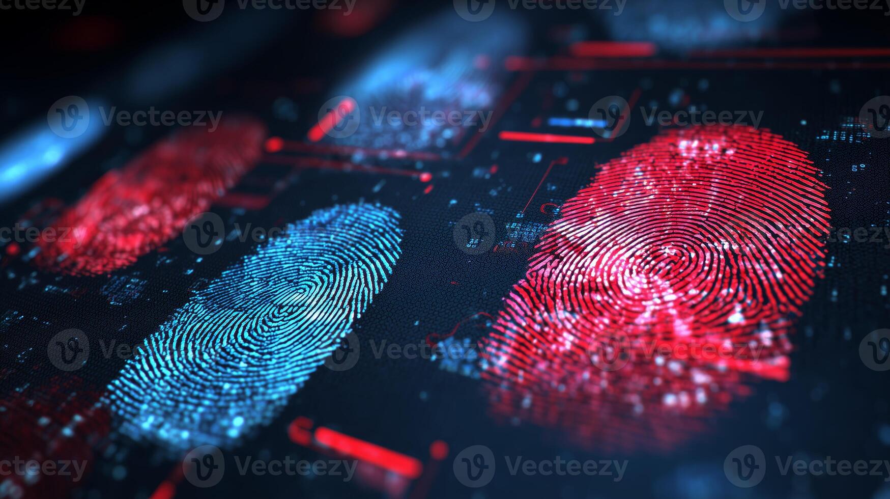 Advanced biometric technology showcases fingerprint and eye recognition engaged in a digital interface, highlighting security features in identification systems. Pro Photo