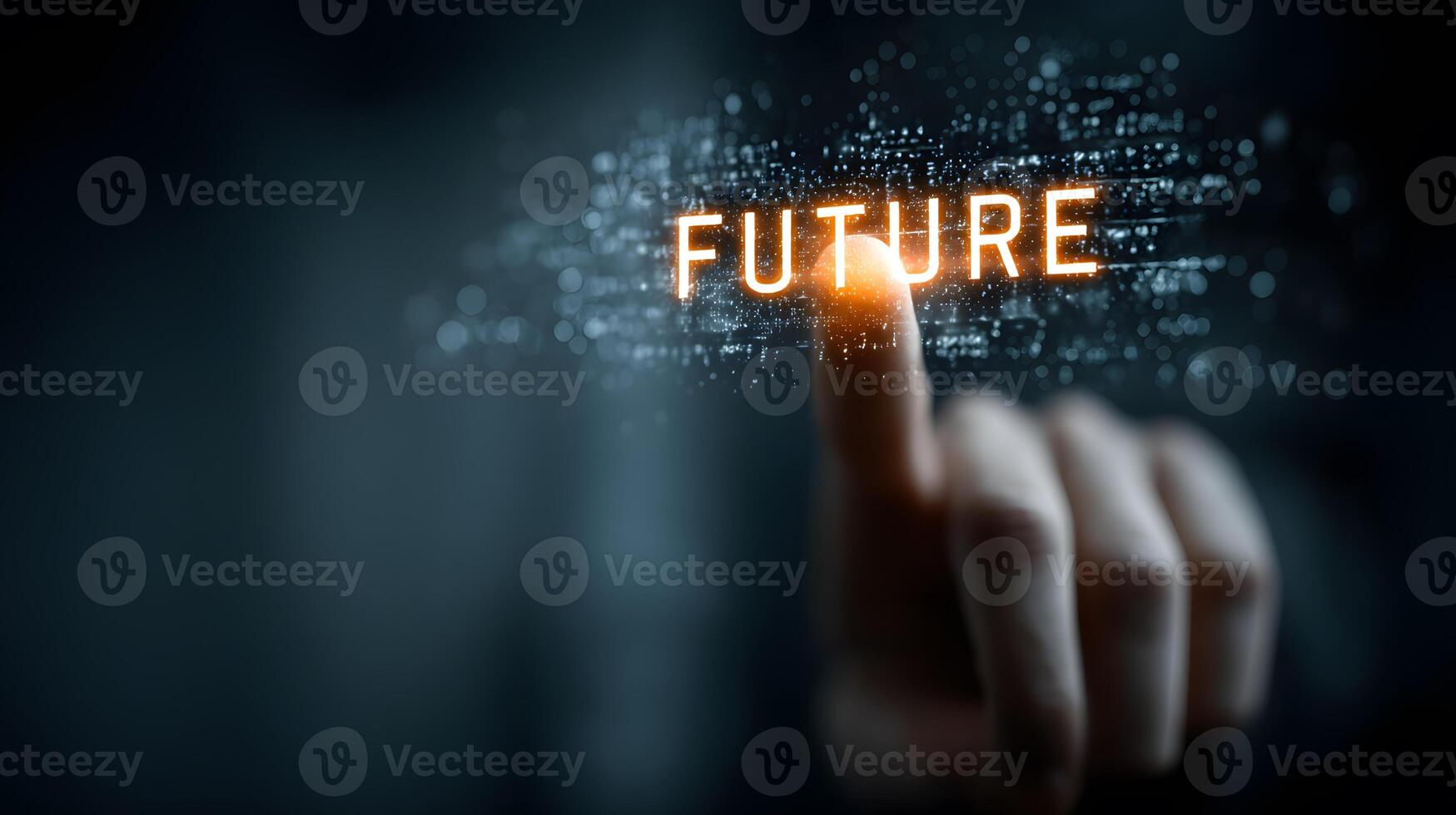 intimate view of a finger connecting with a radiant future symbol on an advanced tech interface Pro Photo