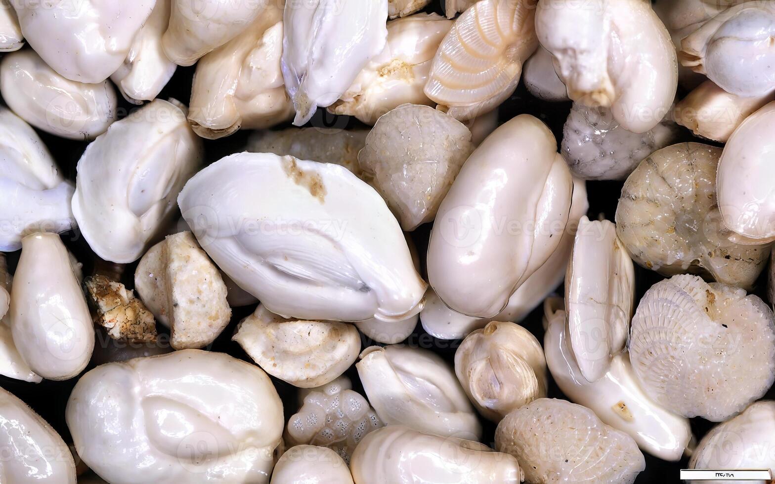 View of the assorted foraminifera shells under magnification showing various fossil microfauna shapes. Pro Photo