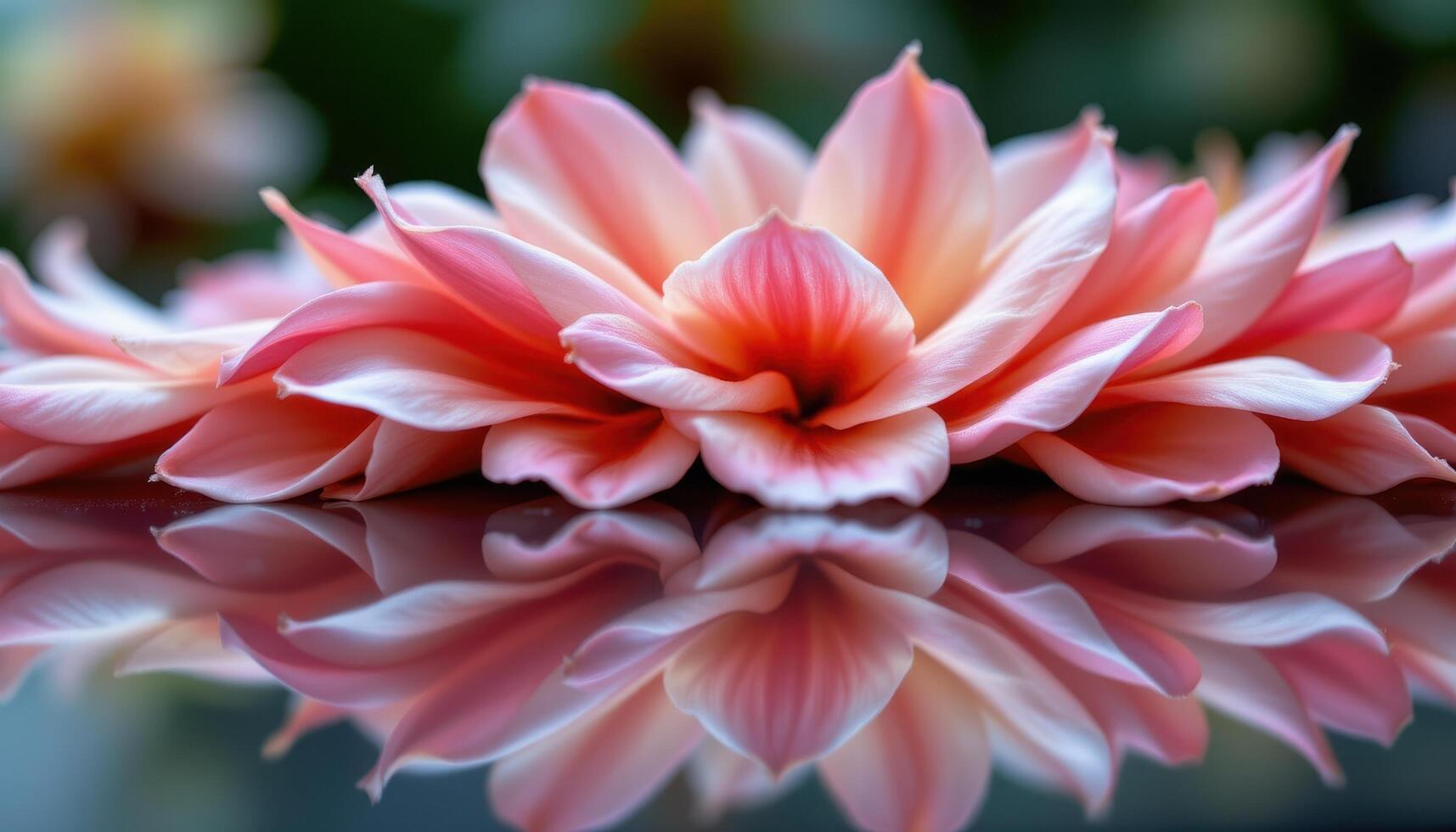 a soft focus image of layered flower petals creating a wave like pattern across a mirrored surface. photo