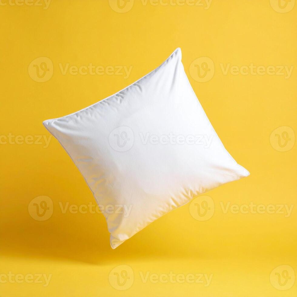 Modern Floating Cushion Mockup with No Pattern and Soft Shadow on Yellow Background Pro Photo