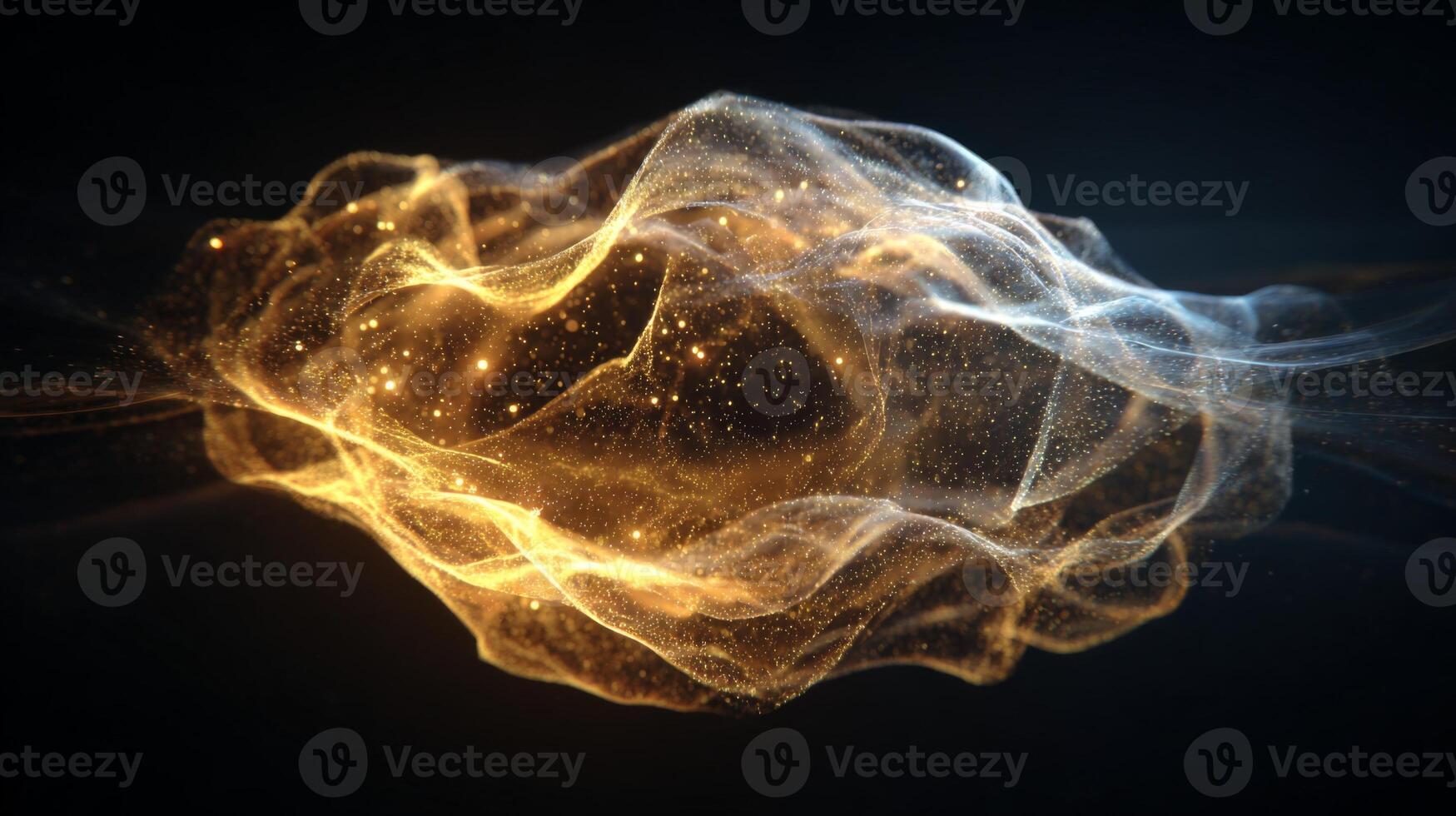 Abstract luminous wave with glowing particles floating in dark space, representing energy and movement in digital art Pro Photo