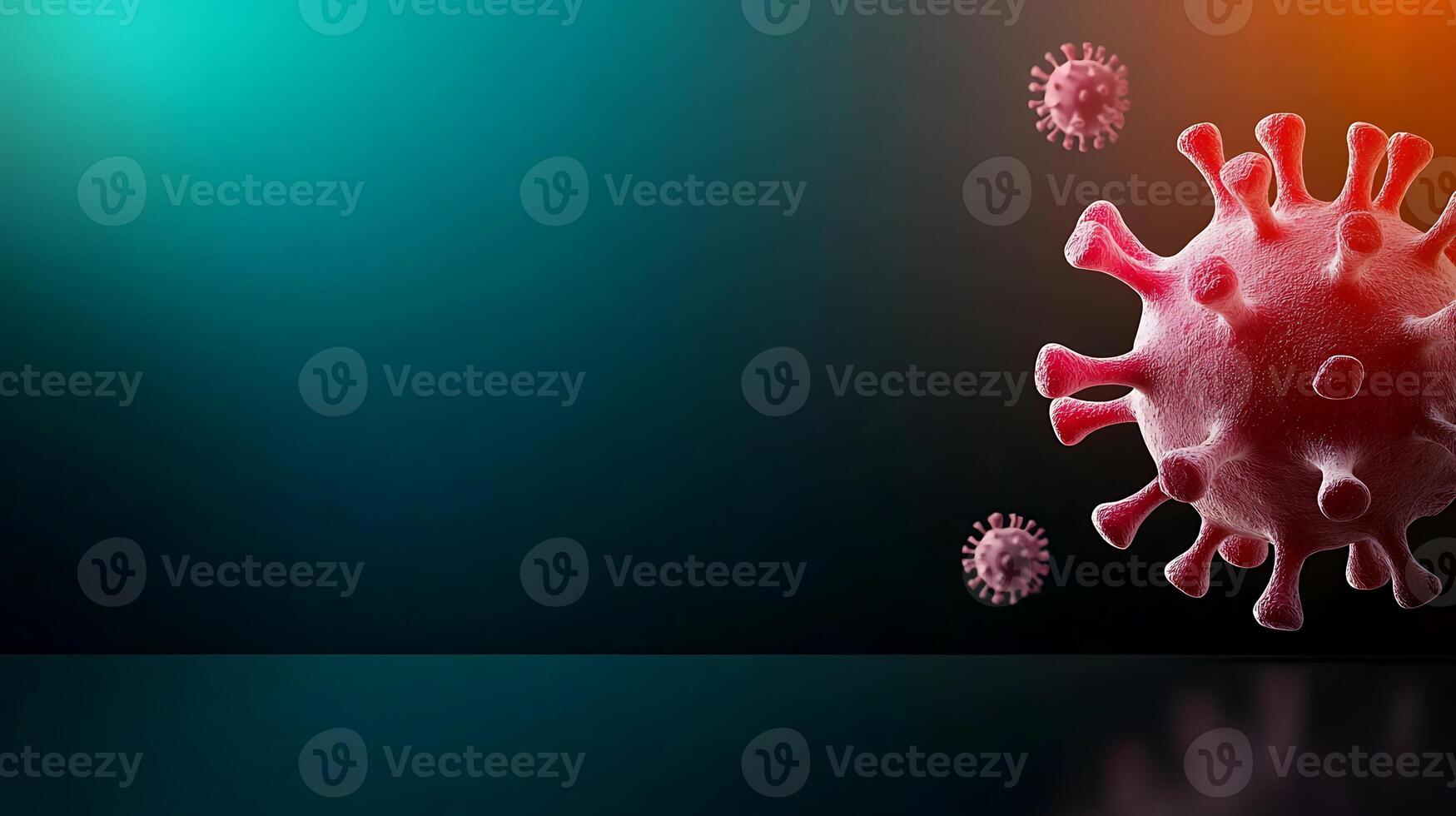 Close-up view of a virus structure with floating particles against a colorful gradient background Pro Photo