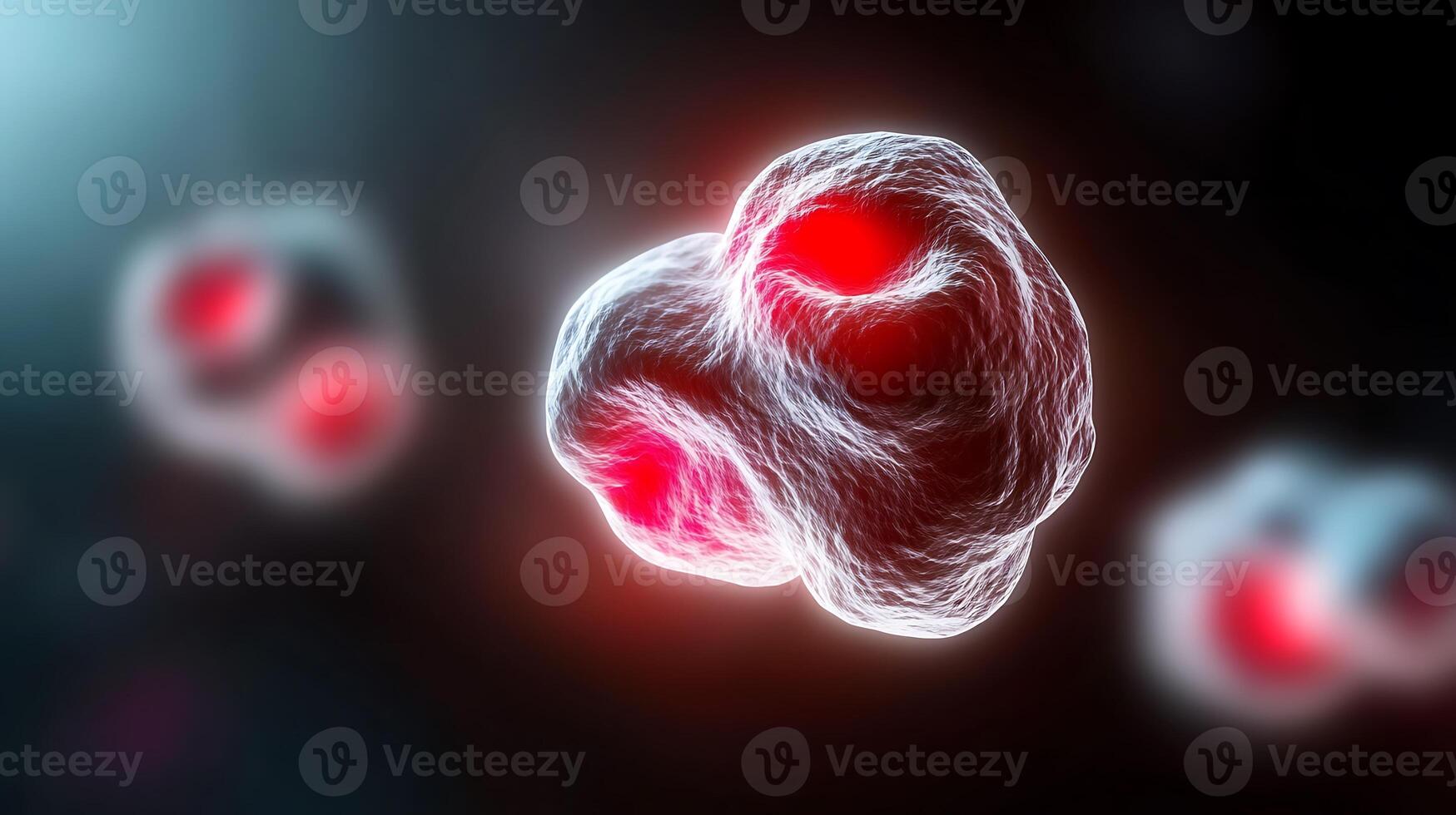 Abstract representation of cellular structures with glowing red highlights in a dark background Pro Photo