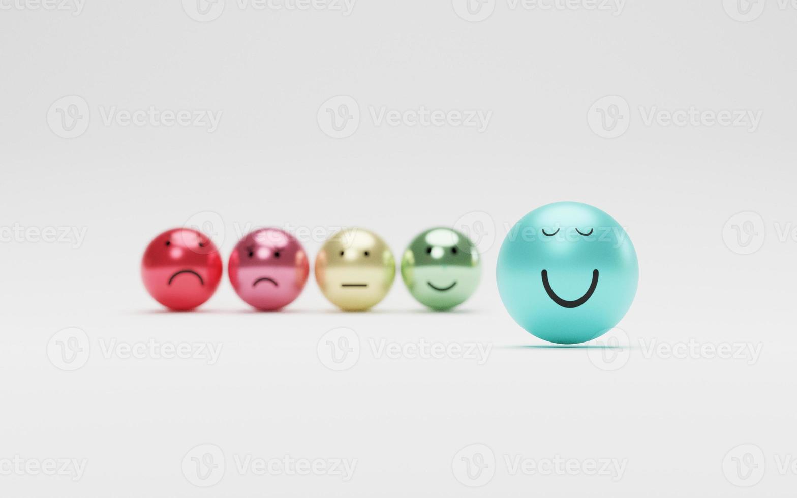 Smile face in front of sad and regular emotion for customer satisfaction and positive mindset thinking and selection concept by 3d render. Pro Photo