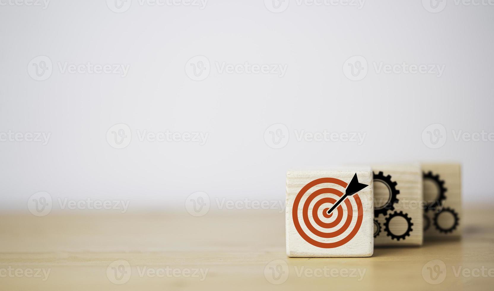 Red dartboard with black arrow in front of mechanical gear for continuous do until achieve business objective target result. Pro Photo