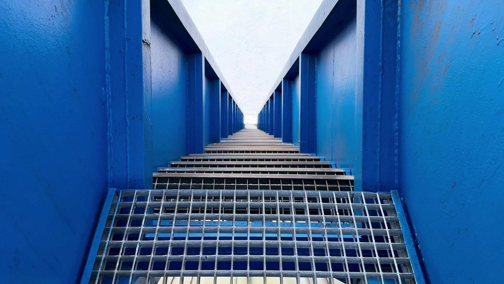 An Abstract Design Featuring Blue Structure with Perpendicular Lines and a Grid Pattern Free Photo