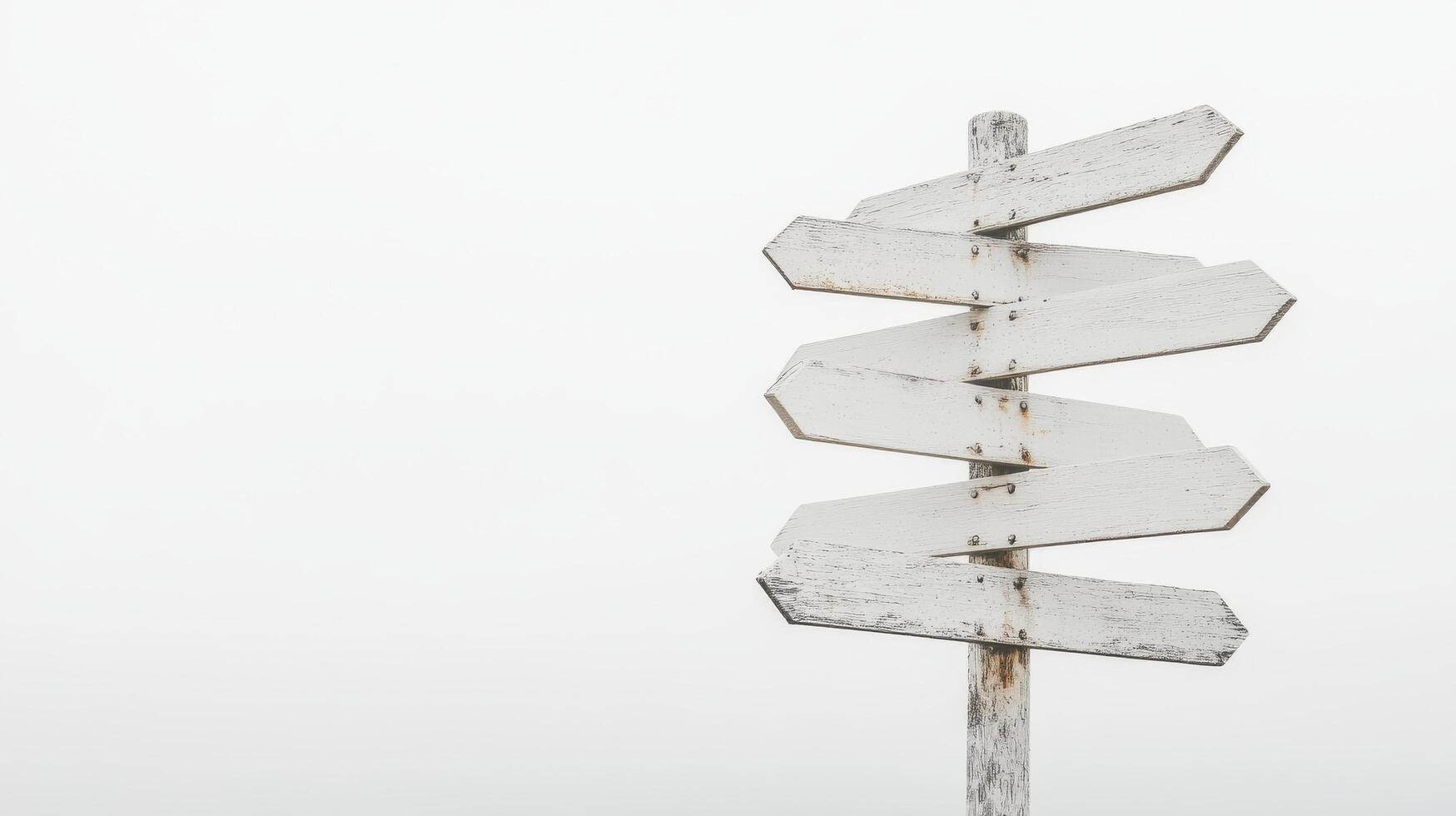 Minimalist white signpost with multiple empty signs against foggy background Free Photo