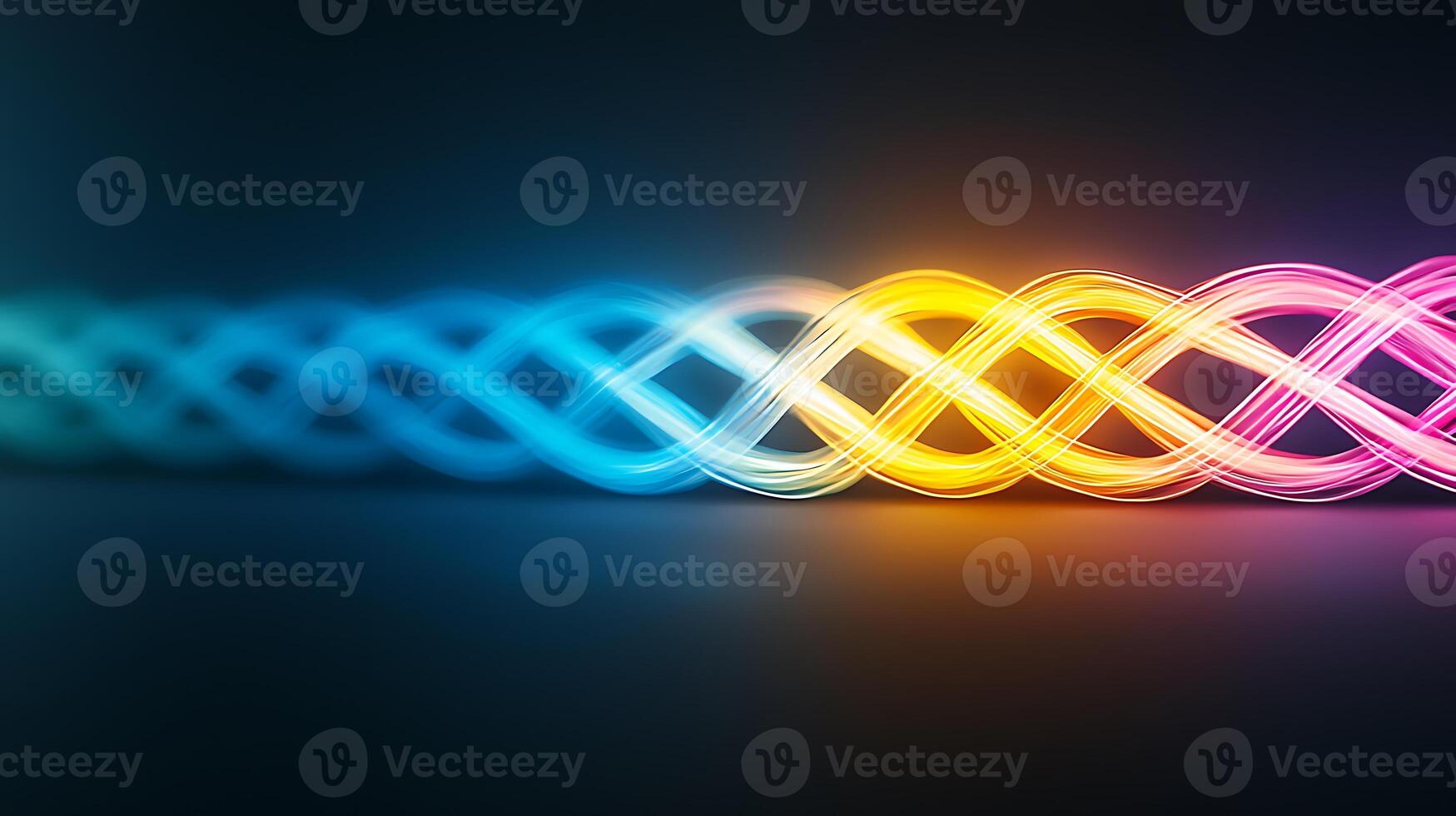 Vibrant abstract light waves intertwining in a dark background, creating a mesmerizing visual effect Pro Photo