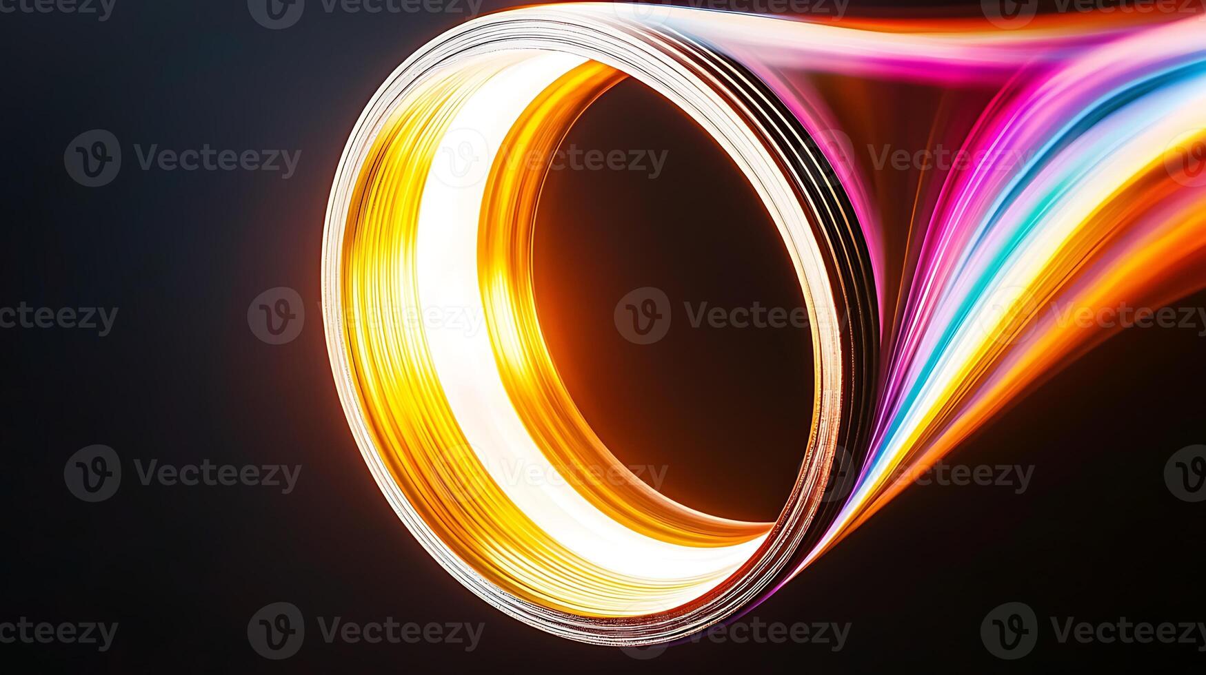 Vibrant light trails swirl around a circular object, creating a dynamic visual effect Pro Photo