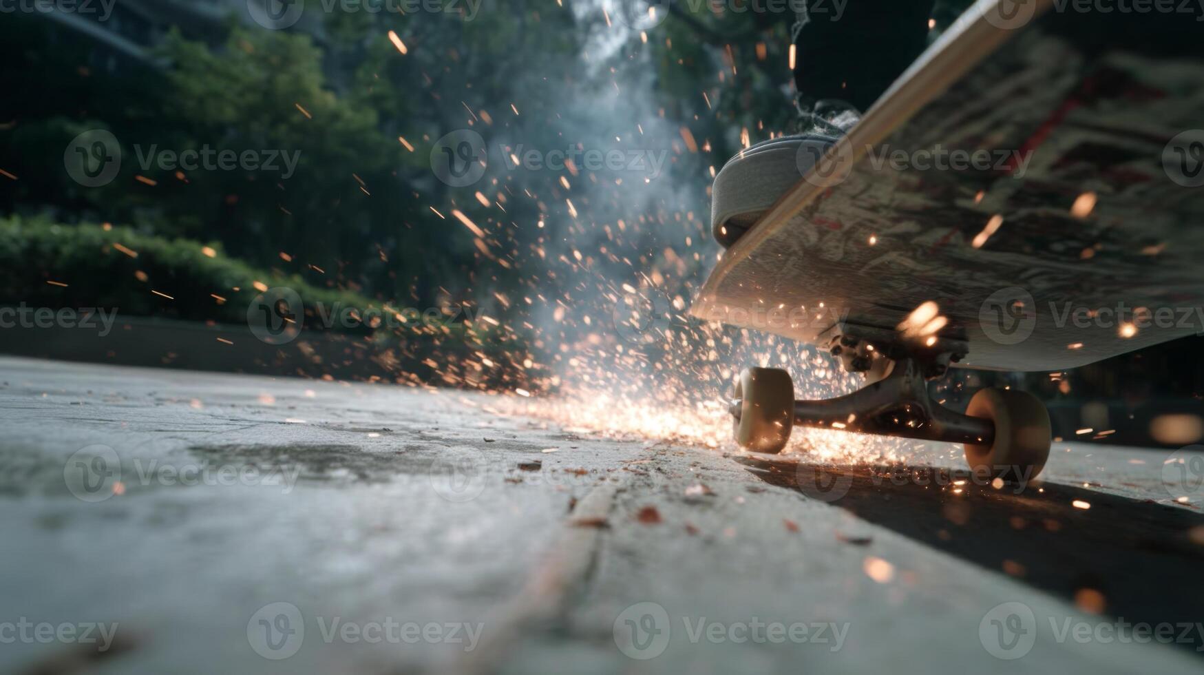 Dynamic Skateboard Action with Sparks Flying in Urban Setting Captured in a Close-Up Shot Pro Photo