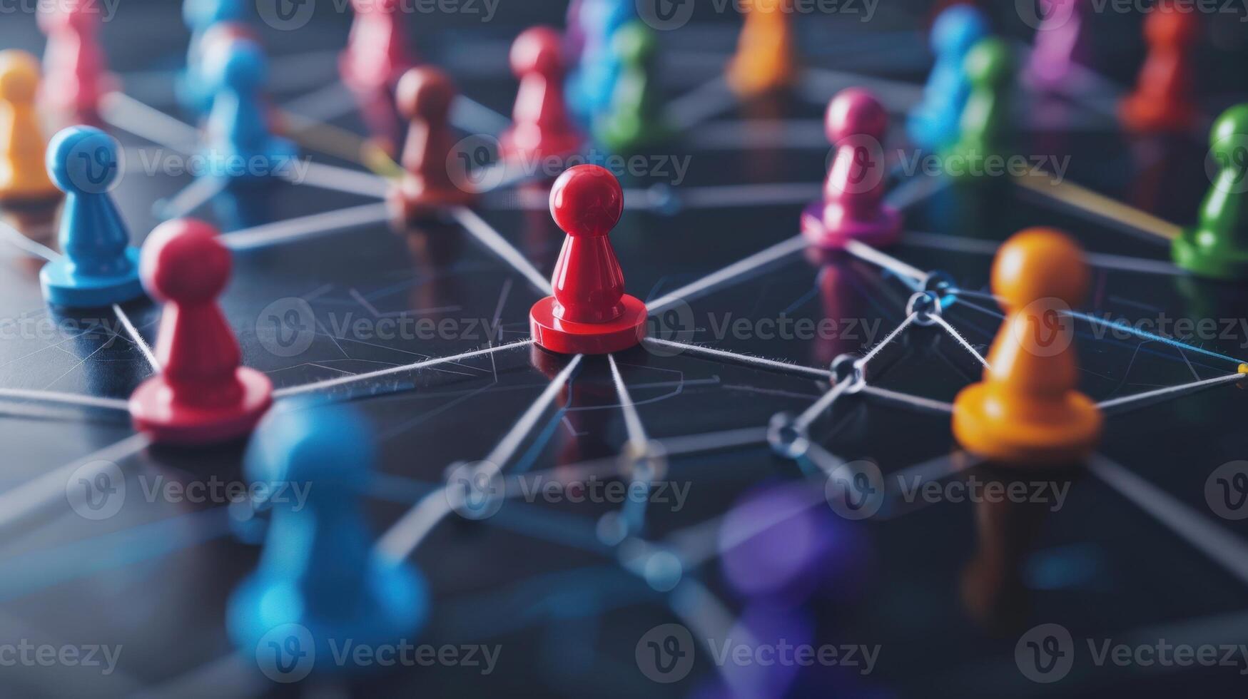 A colorful group of people are connected by a string. A red head is in the middle of the group Pro Photo