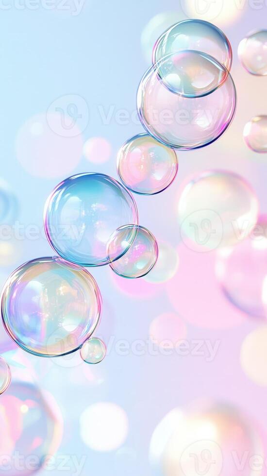 Colorful soap bubbles floating gently against a pastel background, creating a dreamy and ethereal atmosphere Pro Photo