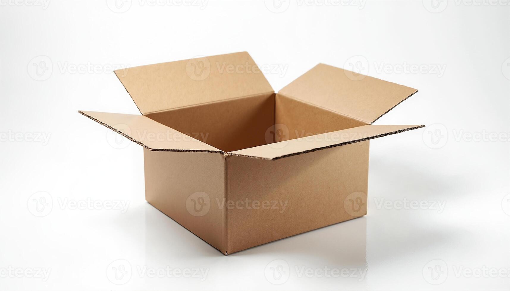 The image depicts an open, empty cardboard box with its flaps spread out, ready for use. Pro Photo