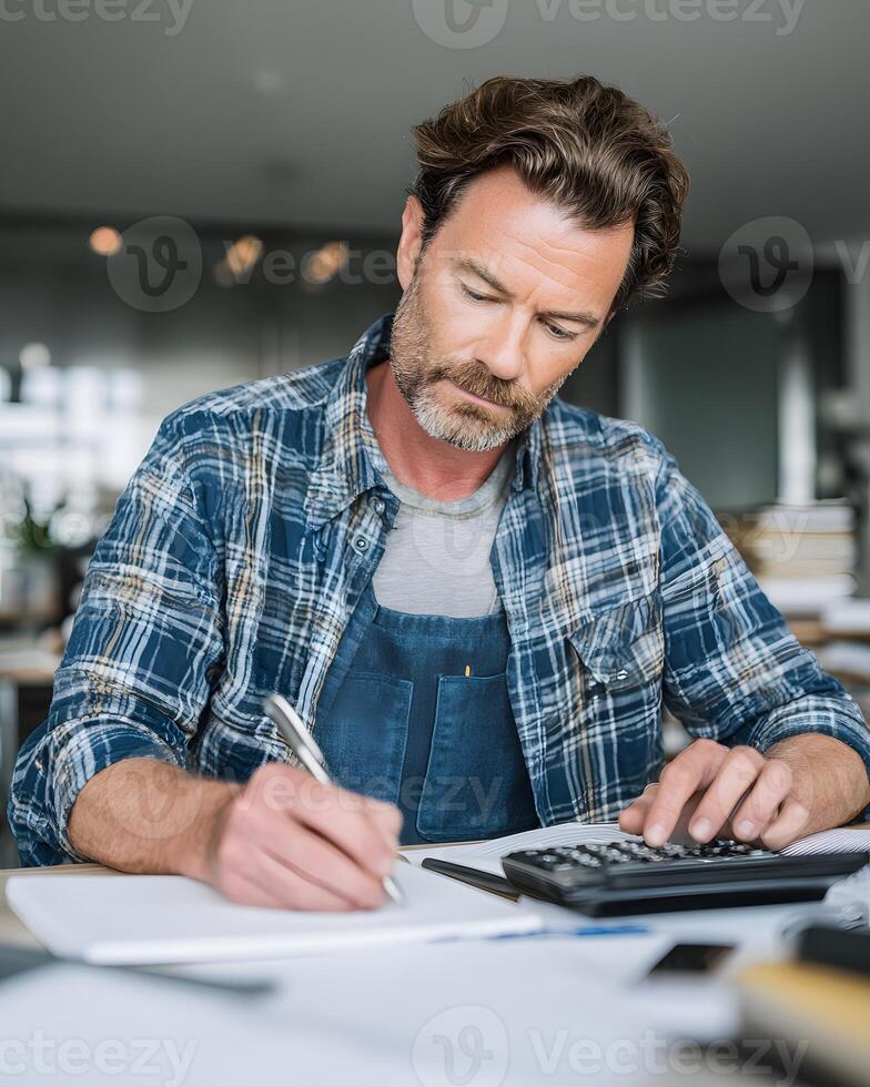 solo worker calculating revenue decrease from new regulation Pro Photo