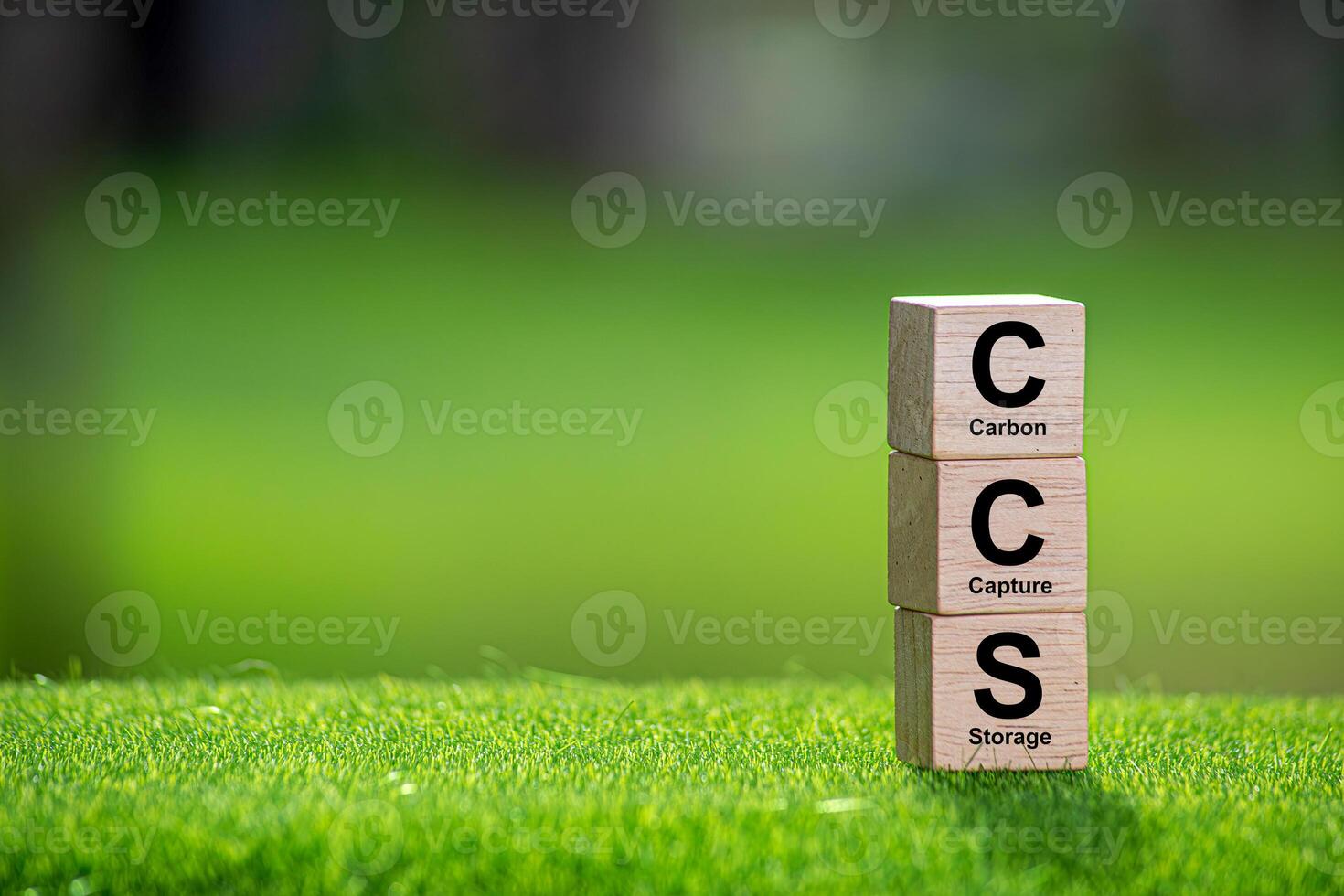 Symbol CCS for Carbon Capture Storage words CCS on a wood cube on the environmental background. Net zero action concept. green energy, reduce carbon footprint, Save energy, carbon dioxide.13 Pro Photo