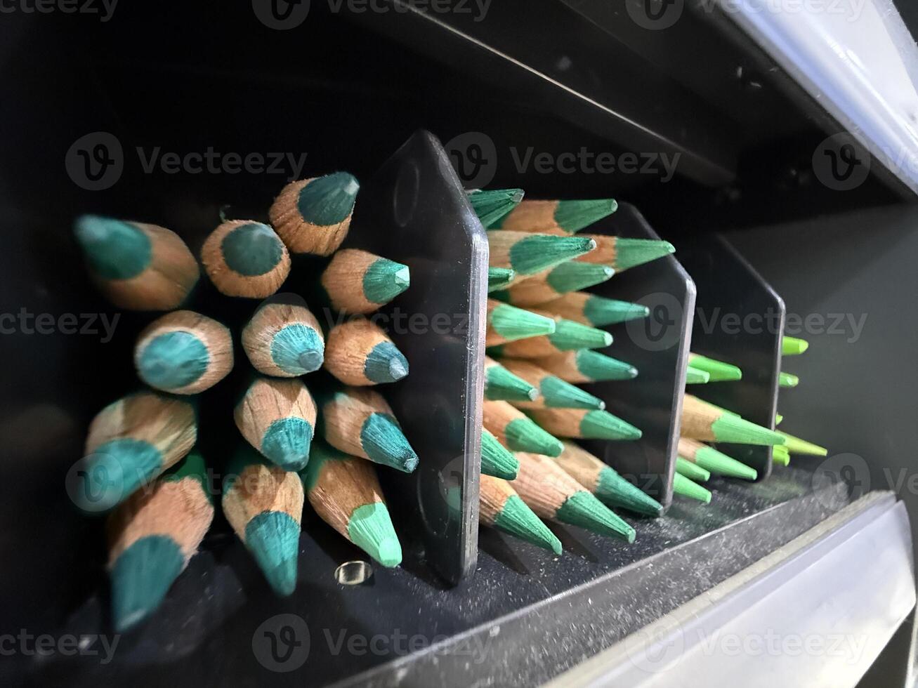 Green pencils stacked in holder creating geometric pattern suitable as background or design element Pro Photo