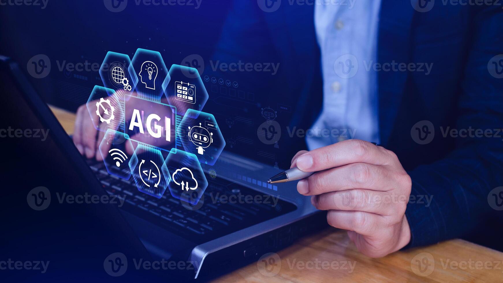 AGI concept, Artificial general intelligence, AI knowledge learning technology, AGI is the future of modern world, combination of humans and AI. tech Pro Photo