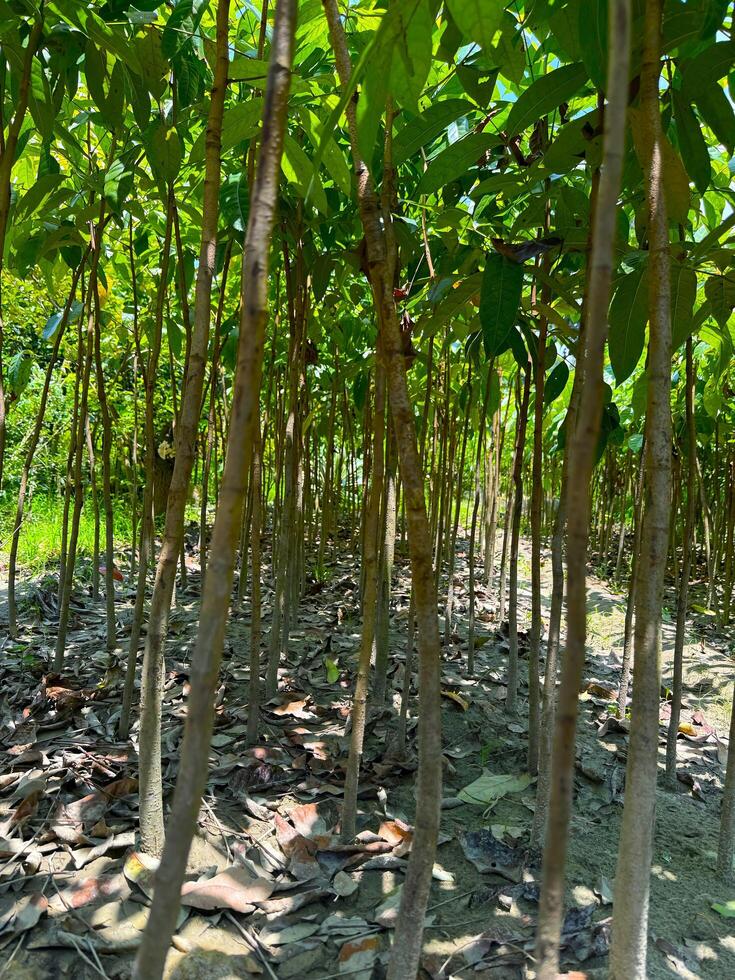 Rows of young mango trees create a symmetrical pattern in an agricultural nursery setting photo