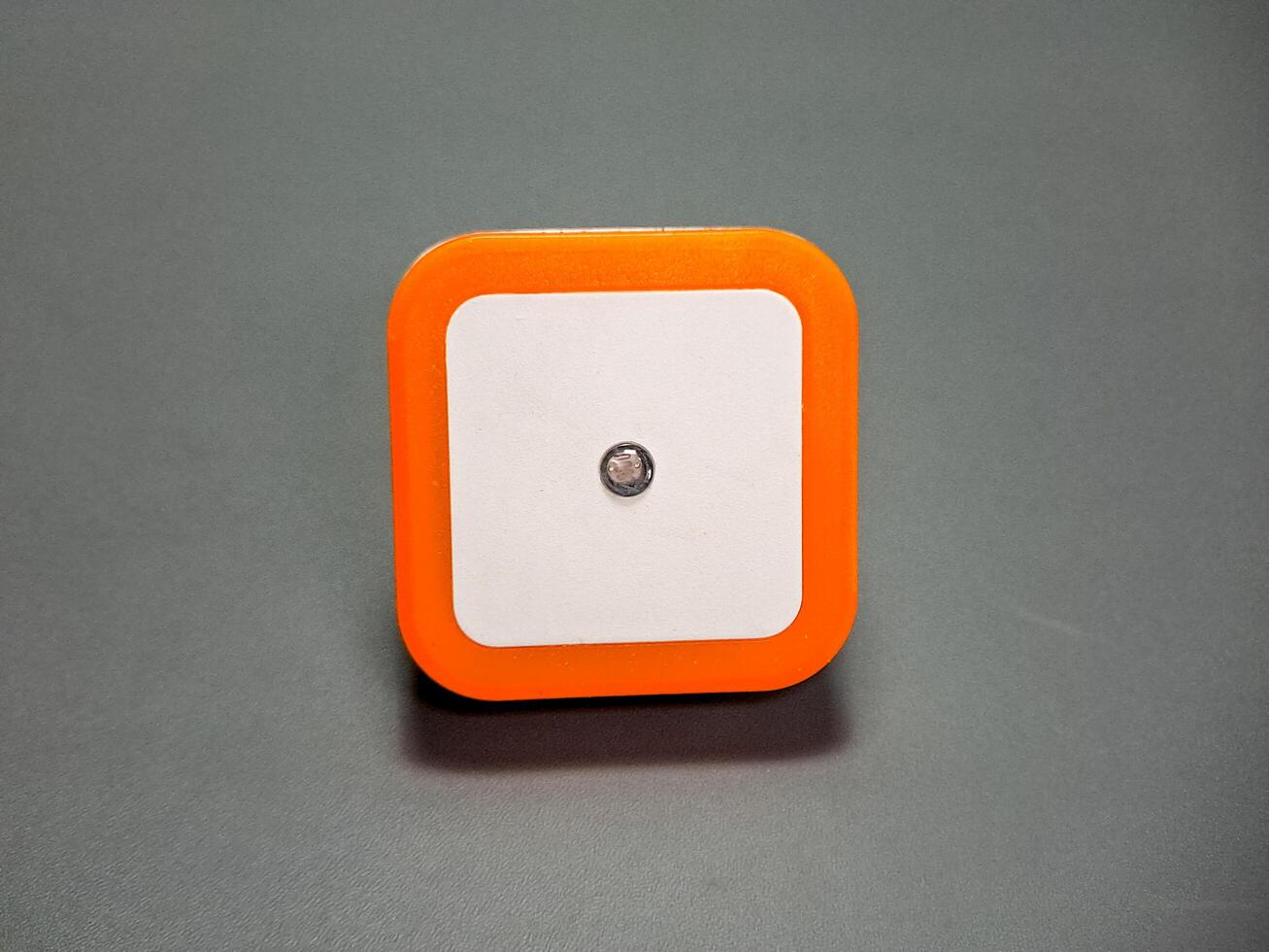 A geometric object with a rounded square form showcases modern simplicity on a neutral background, highlighting the interplay of white, orange, and a dark grey backdrop. photo