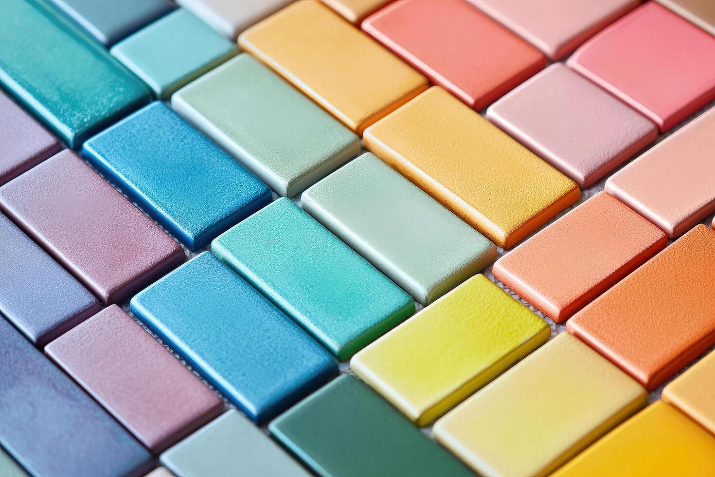 Close view exhibits rectangular tiles in gradient hues, displaying an artistic, colorful array Free Photo