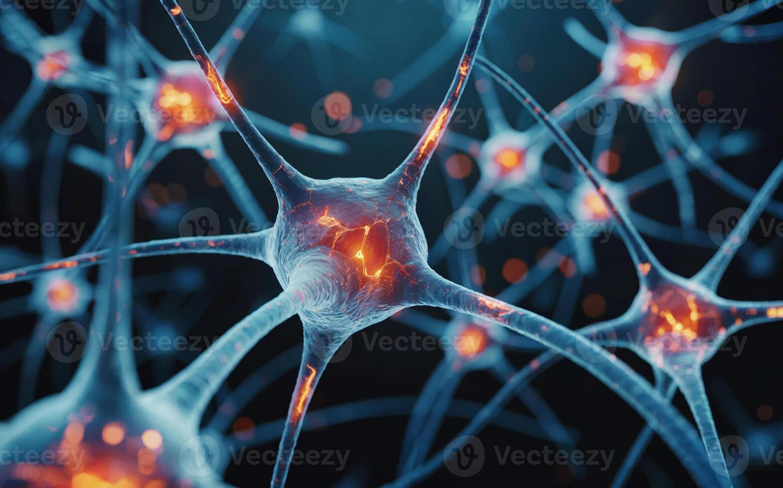 A complex network of interconnected neurons is depicted with glowing synapses, highlighting their intricate pathways Pro Photo