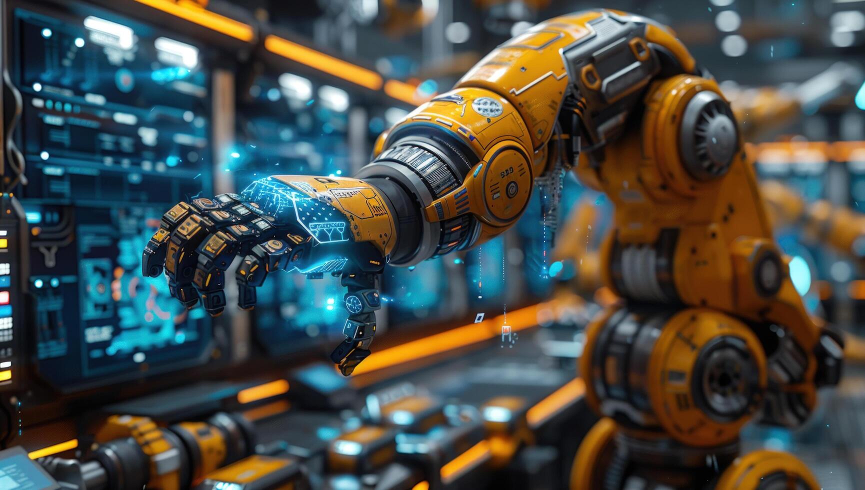 Robotic arm operating advanced computer interface in an automated industrial environment Free Photo