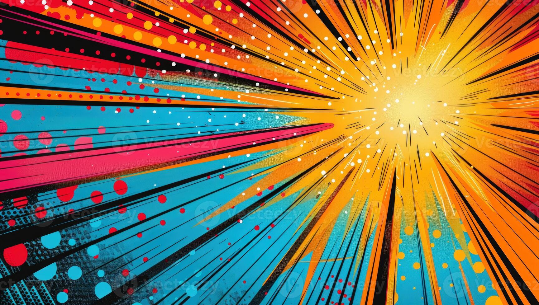 Abstract colorful burst background design with dynamic radial rays and dots Pro Photo