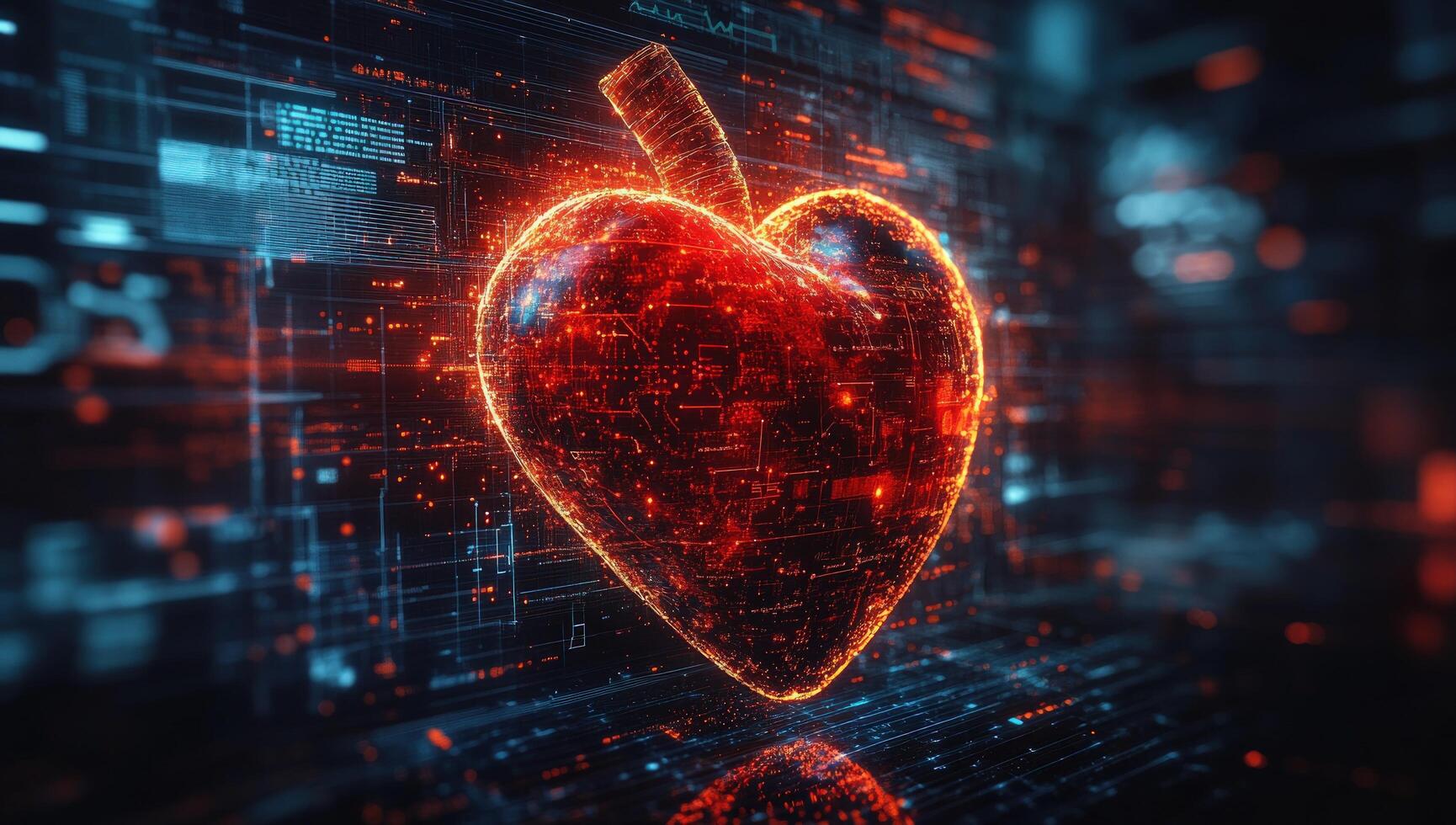 Digital heart data flowing through technological circuit network photo