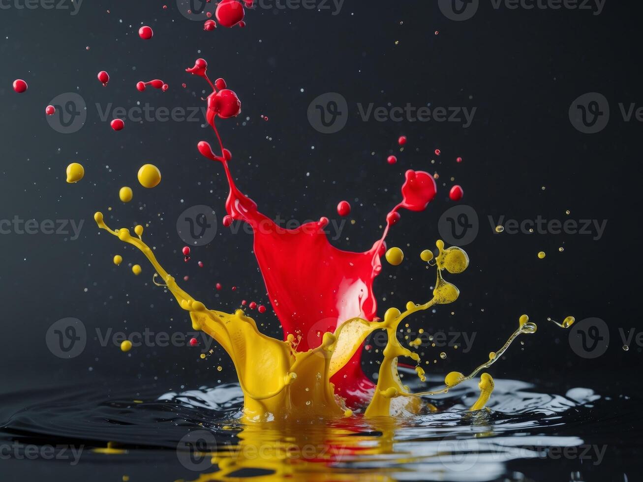 Vibrant Paint Splash. A Collision of Red and Yellow Creating a Dynamic Visual Display. Pro Photo