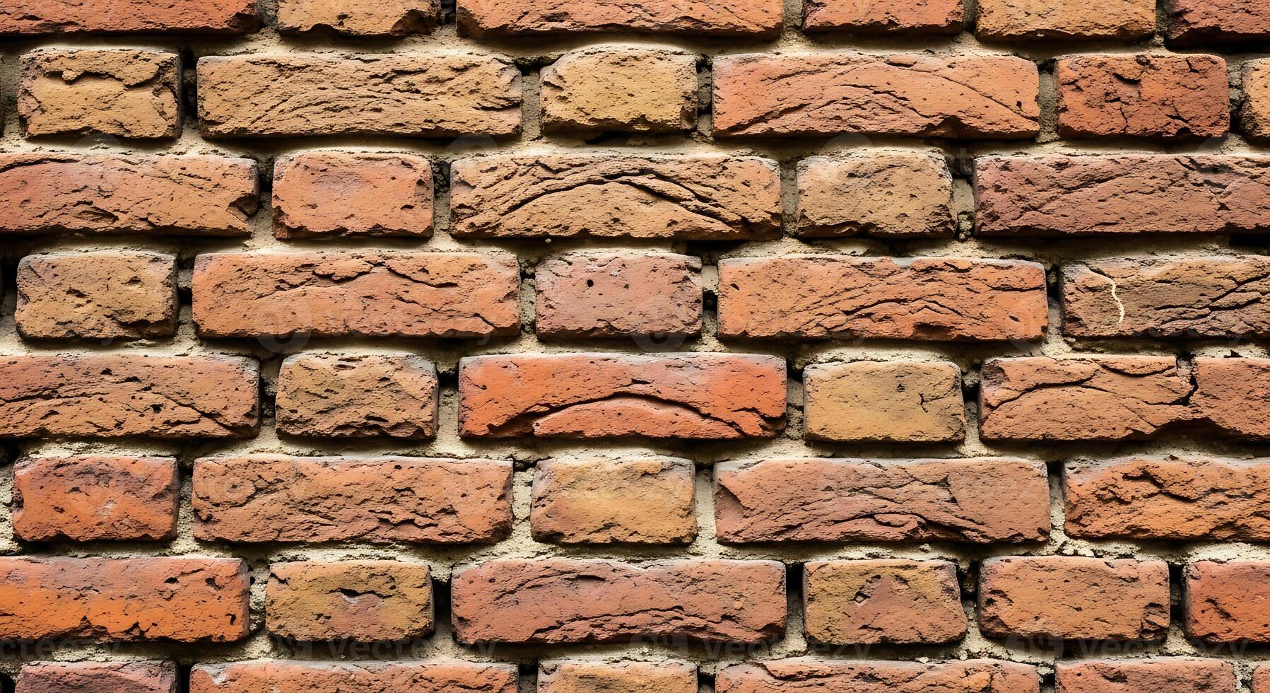Close-up view of a weathered red brick wall showing textured details and grout lines creating a rustic backdrop Pro Photo